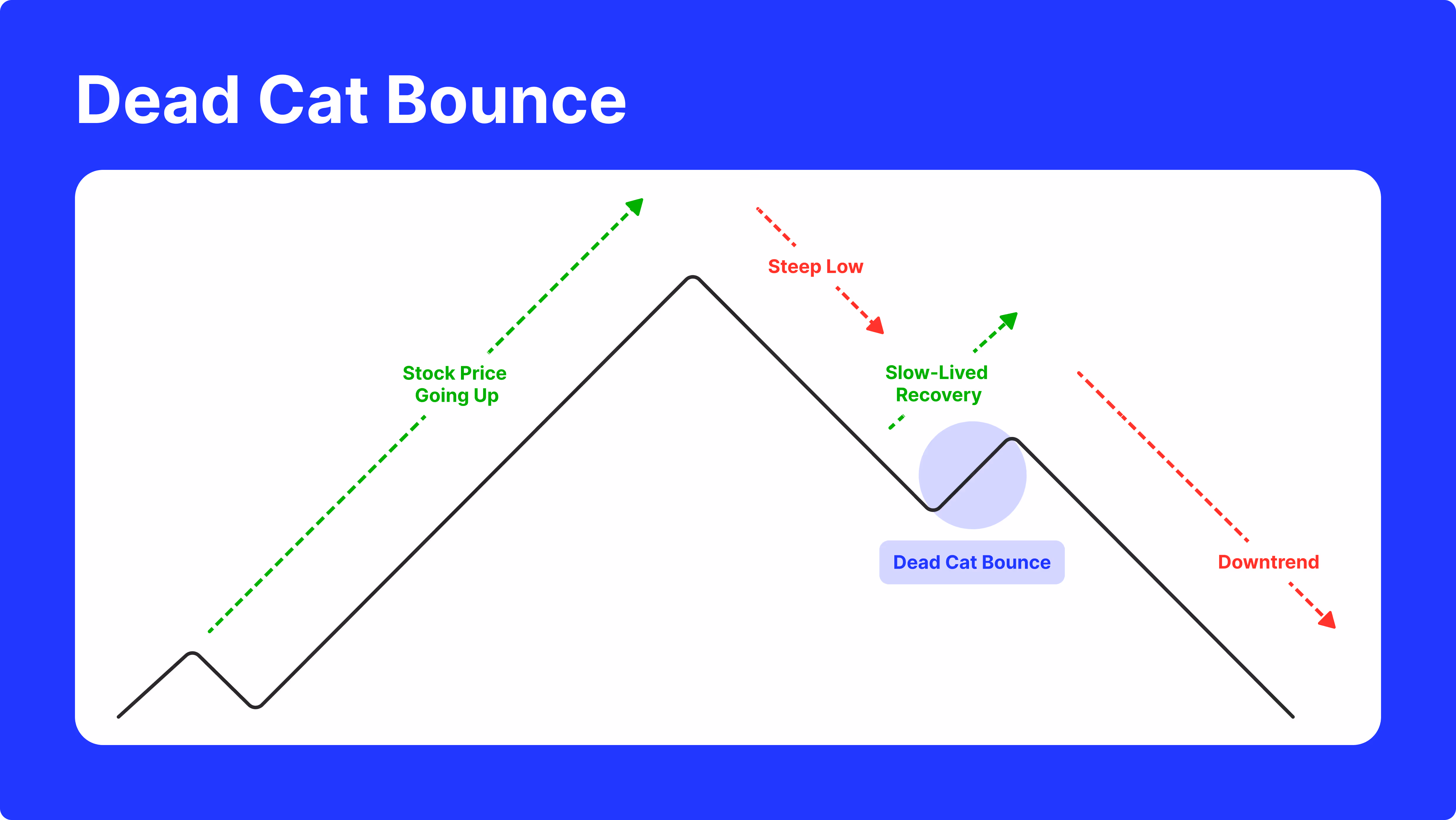 A short-lived recovery in a particular stock price following a notable downtrend is a dead cat bounce. This bounce can create a wrong impression that the downtrend is reversing, prompting some investors to buy in hopes of a sustained recovery.